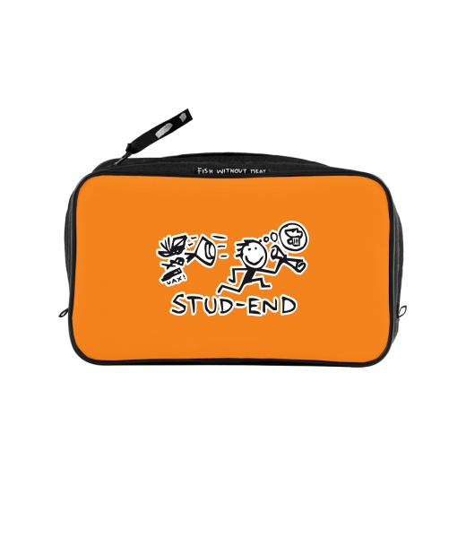 UAX Unisex sizes XL cosmetic bag with printing and pocket with design 1048 STUD-END in color SIGNAL ORANGE