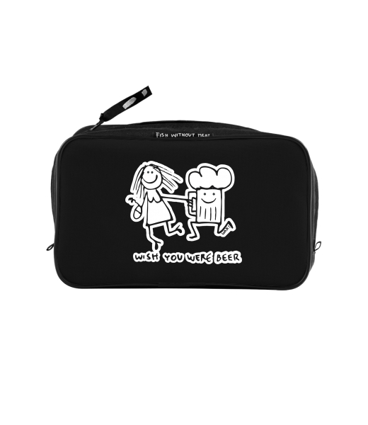 UAX Unisex sizes XL cosmetic bag with printing and pocket with design 1049 WISH YOU WERE BEER in color BLACK
