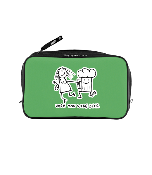 UAX Unisex sizes XL cosmetic bag with printing and pocket with design 1049 WISH YOU WERE BEER in color BRIGHT GREEN