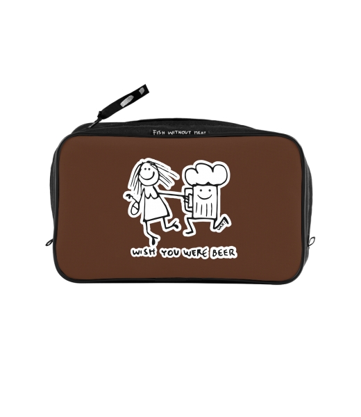 UAX Unisex sizes XL cosmetic bag with printing and pocket with design 1049 WISH YOU WERE BEER in color BROWN SUGAR