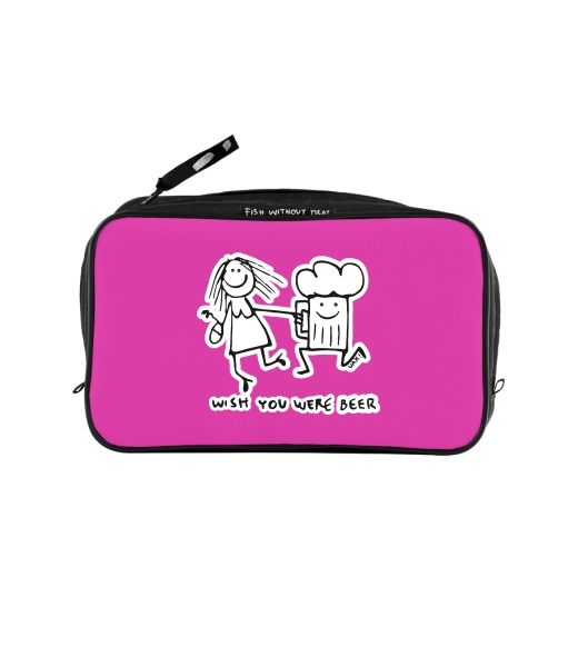 UAX Unisex sizes XL cosmetic bag with printing and pocket with design 1049 WISH YOU WERE BEER in color INDIAN LILA