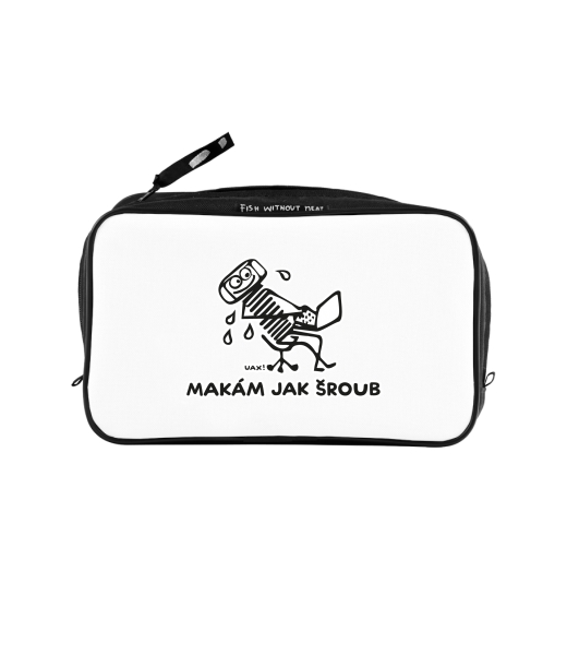 UAX Unisex sizes XL cosmetic bag with printing and pocket with design 1061 MAKÁM JAK ŠROUB in color WHITE