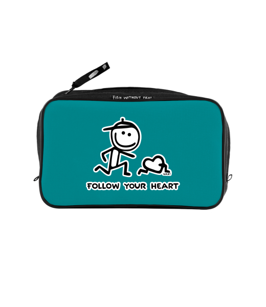 UAX Unisex sizes XL cosmetic bag with printing and pocket with design 1063 FOLOW YOUR HEART in color TURQUOISE