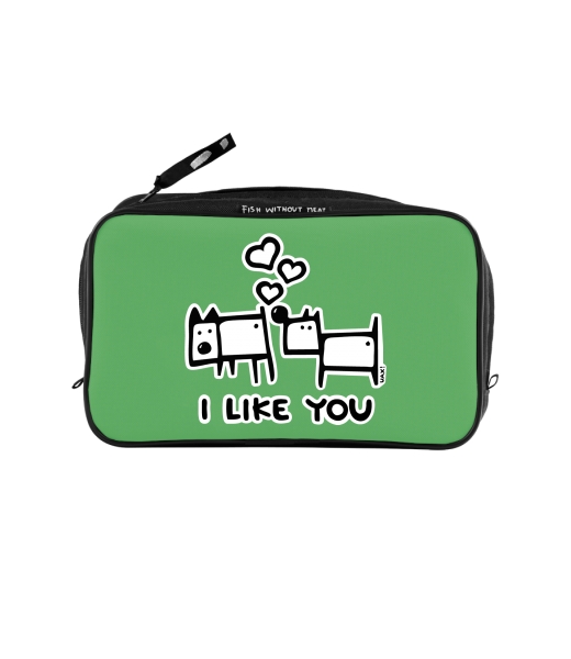 UAX Unisex sizes XL cosmetic bag with printing and pocket with design 1066 I LIKE YOU in color BRIGHT GREEN