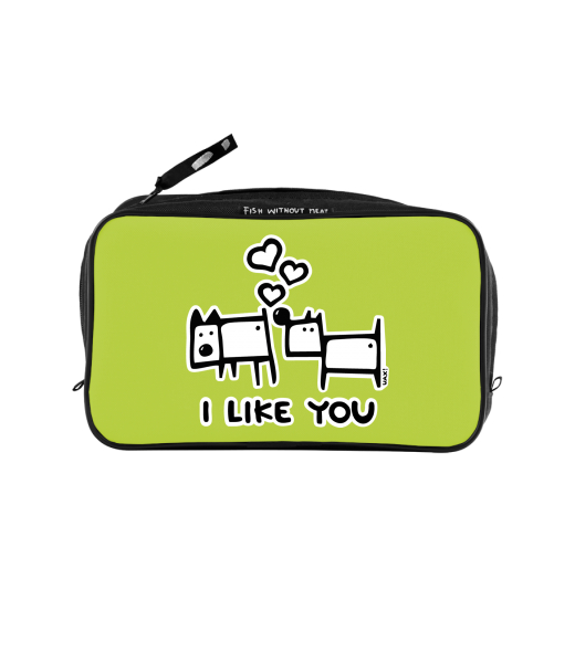 UAX Unisex sizes XL cosmetic bag with printing and pocket with design 1066 I LIKE YOU in color GREEN LIMET