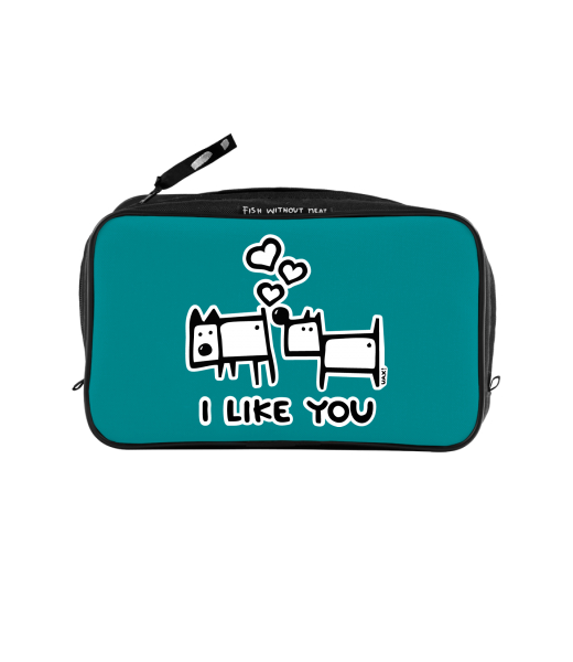 UAX Unisex sizes XL cosmetic bag with printing and pocket with design 1066 I LIKE YOU in color TURQUOISE