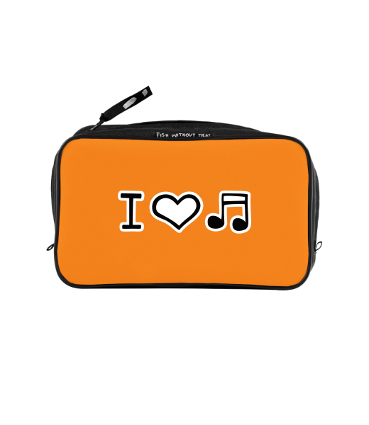 UAX Unisex sizes XL cosmetic bag with printing and pocket with design 1067 I LOVE MUSIC in color SIGNAL ORANGE