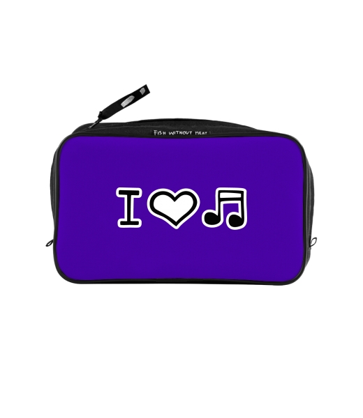 UAX Unisex sizes XL cosmetic bag with printing and pocket with design 1067 I LOVE MUSIC in color VIOLET