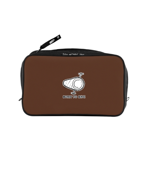 UAX Unisex sizes XL cosmetic bag with printing and pocket with design 1074 BORN TO BIKE in color BROWN SUGAR