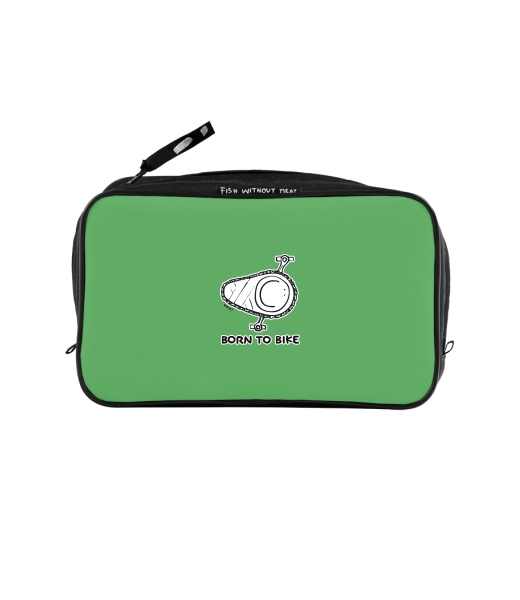 UAX Unisex sizes XL cosmetic bag with printing and pocket with design 1074 BORN TO BIKE in color BRIGHT GREEN
