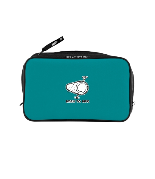 UAX Unisex sizes XL cosmetic bag with printing and pocket with design 1074 BORN TO BIKE in color TURQUOISE