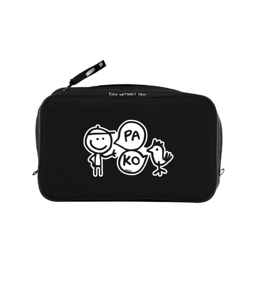 UAX Unisex sizes XL cosmetic bag with printing and pocket with design 1075 PAKO in color BLACK