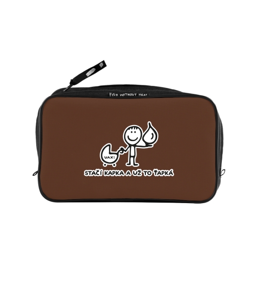 UAX Unisex sizes XL cosmetic bag with printing and pocket with design 1081 STAČÍ KAPKA A UŽ TO ŤAPKÁ in color BROWN SUGAR