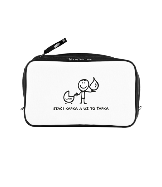 UAX Unisex sizes XL cosmetic bag with printing and pocket with design 1081 STAČÍ KAPKA A UŽ TO ŤAPKÁ in color WHITE