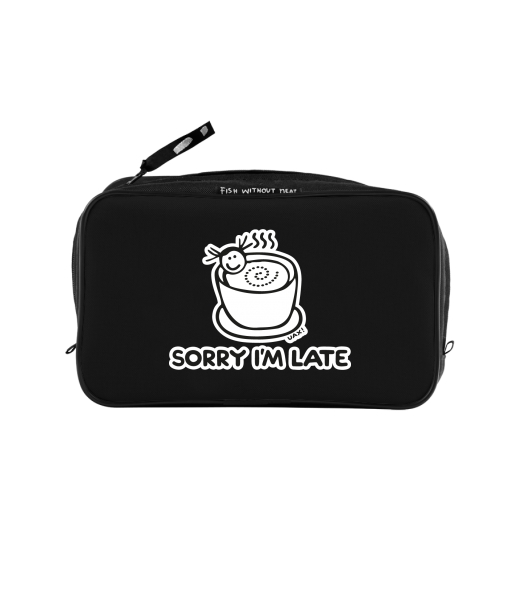 UAX Unisex sizes XL cosmetic bag with printing and pocket with design 1087 SORRY IM LATE in color BLACK