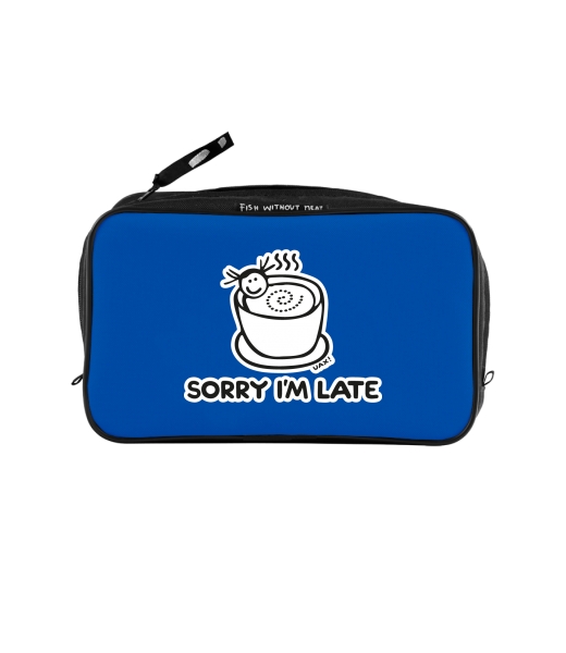 UAX Unisex sizes XL cosmetic bag with printing and pocket with design 1087 SORRY IM LATE in color CLASSIC BLUE