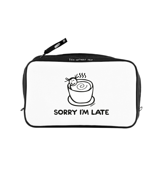 UAX Unisex sizes XL cosmetic bag with printing and pocket with design 1087 SORRY IM LATE in color WHITE