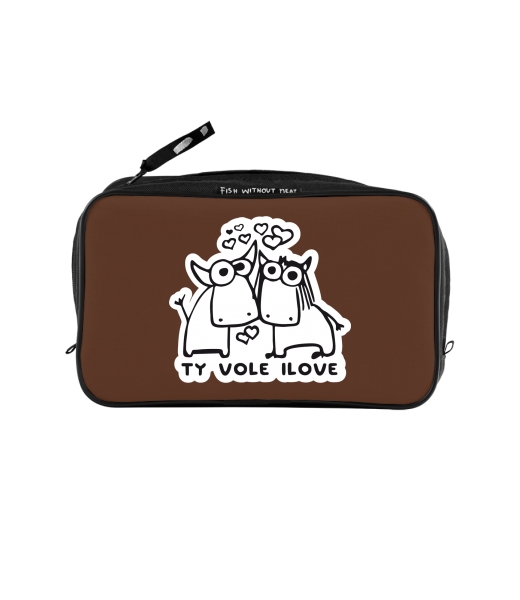 UAX Unisex sizes XL cosmetic bag with printing and pocket with design 1089 TY VOLE I LOVE in color BROWN SUGAR