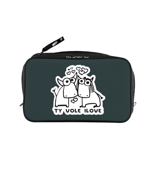 UAX Unisex sizes XL cosmetic bag with printing and pocket with design 1089 TY VOLE I LOVE in color GREY INK