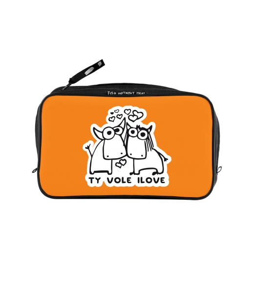 UAX Unisex sizes XL cosmetic bag with printing and pocket with design 1089 TY VOLE I LOVE in color SIGNAL ORANGE