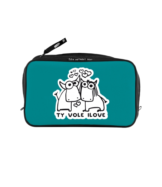 UAX Unisex sizes XL cosmetic bag with printing and pocket with design 1089 TY VOLE I LOVE in color TURQUOISE