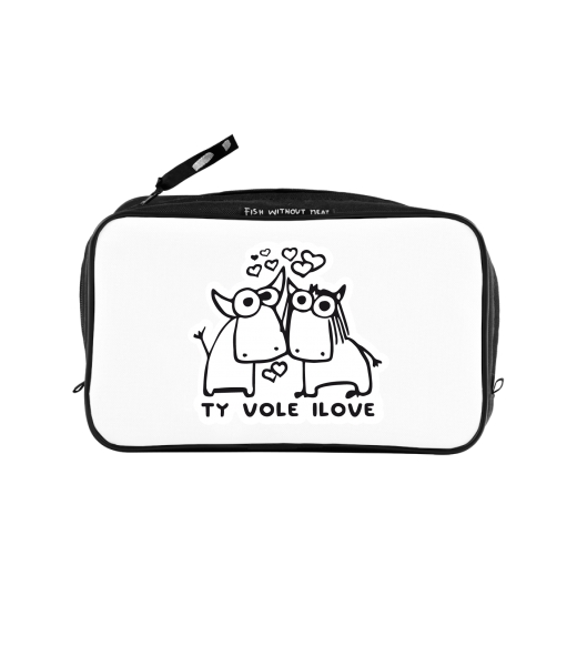 UAX Unisex sizes XL cosmetic bag with printing and pocket with design 1089 TY VOLE I LOVE in color WHITE