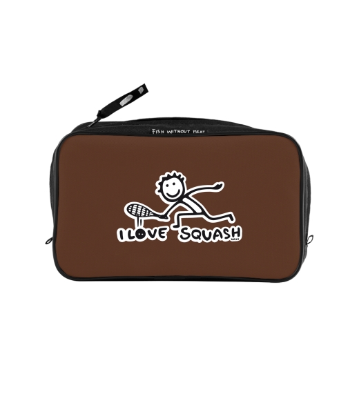 UAX Unisex sizes XL cosmetic bag with printing and pocket with design 1091 I LOVE SQUASH in color BROWN SUGAR