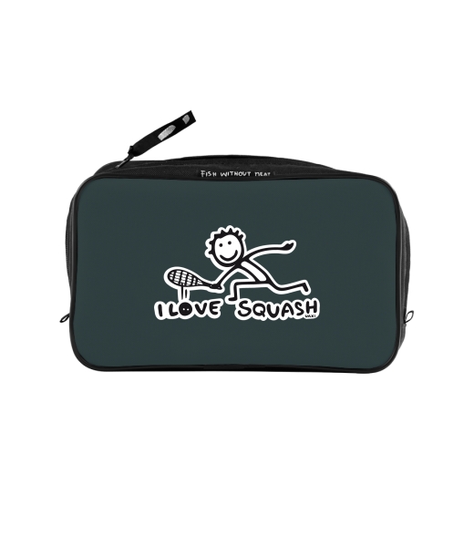 UAX Unisex sizes XL cosmetic bag with printing and pocket with design 1091 I LOVE SQUASH in color GREY INK