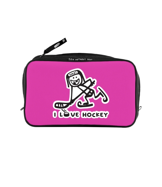 UAX Unisex sizes XL cosmetic bag with printing and pocket with design 1100 I LOVE HOCKEY in color INDIAN LILA