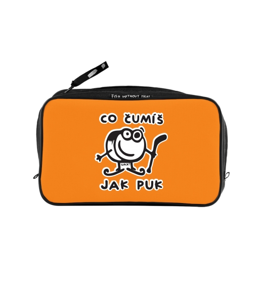 UAX Unisex sizes XL cosmetic bag with printing and pocket with design 1101 ČUMÍŠ JAK PUK in color SIGNAL ORANGE