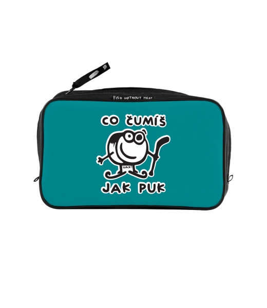 UAX Unisex sizes XL cosmetic bag with printing and pocket with design 1101 ČUMÍŠ JAK PUK in color TURQUOISE