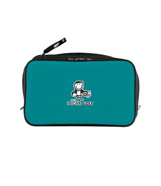 UAX Unisex sizes XL cosmetic bag with printing and pocket with design 1107 I LOVE GOLF in color TURQUOISE