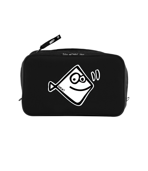 UAX Unisex sizes XL cosmetic bag with printing and pocket with design 1111 PIRANHA in color BLACK