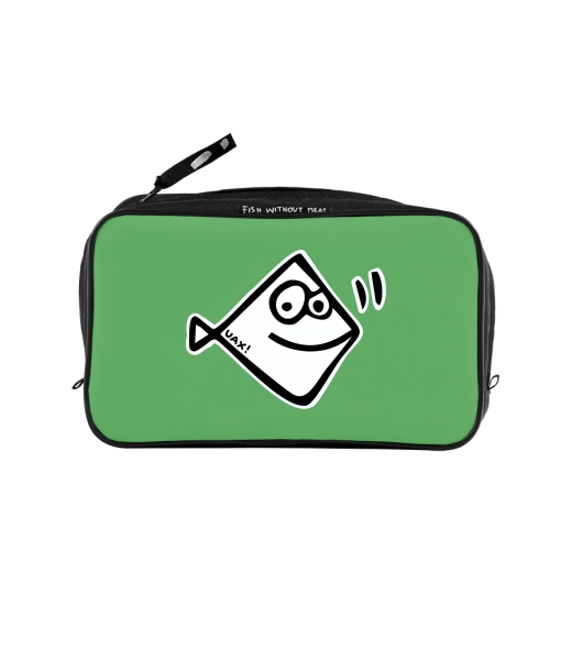 UAX Unisex sizes XL cosmetic bag with printing and pocket with design 1111 PIRANHA in color BRIGHT GREEN