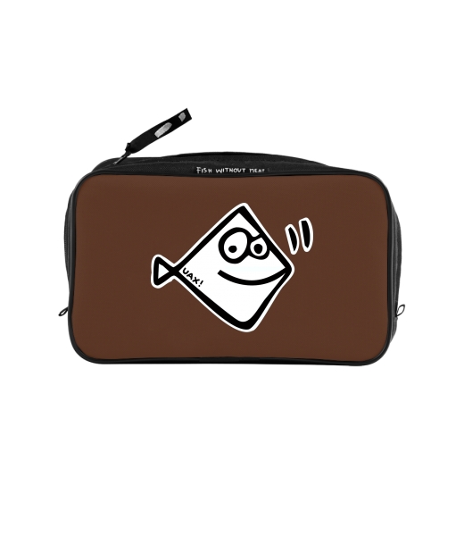 UAX Unisex sizes XL cosmetic bag with printing and pocket with design 1111 PIRANHA in color BROWN SUGAR
