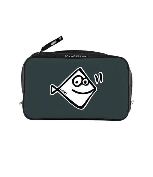 UAX Unisex sizes XL cosmetic bag with printing and pocket with design 1111 PIRANHA in color GREY INK