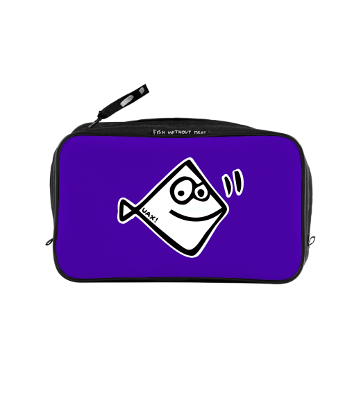 UAX Unisex sizes XL cosmetic bag with printing and pocket with design 1111 PIRANHA in color VIOLET