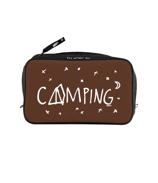 UAX Unisex sizes XL cosmetic bag with printing and pocket with design 1112 CAMPING in color BROWN SUGAR
