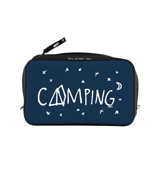 UAX Unisex sizes XL cosmetic bag with printing and pocket with design 1112 CAMPING in color MIDNIGHT BLUE