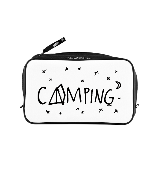 UAX Unisex sizes XL cosmetic bag with printing and pocket with design 1112 CAMPING in color WHITE