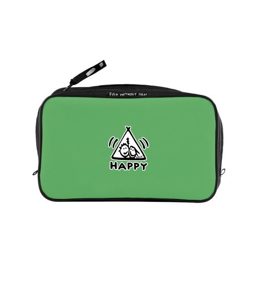 UAX Unisex sizes XL cosmetic bag with printing and pocket with design 1113 HAPPY in color BRIGHT GREEN