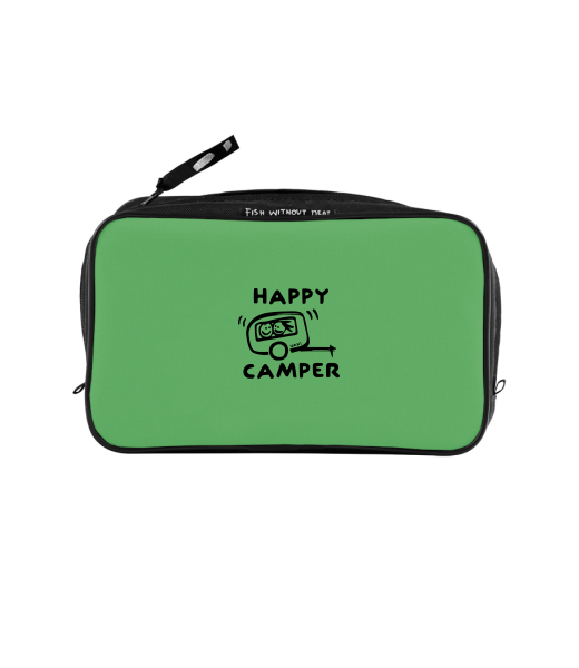 UAX Unisex sizes XL cosmetic bag with printing and pocket with design 1116 HAPPY CAMPER in color BRIGHT GREEN