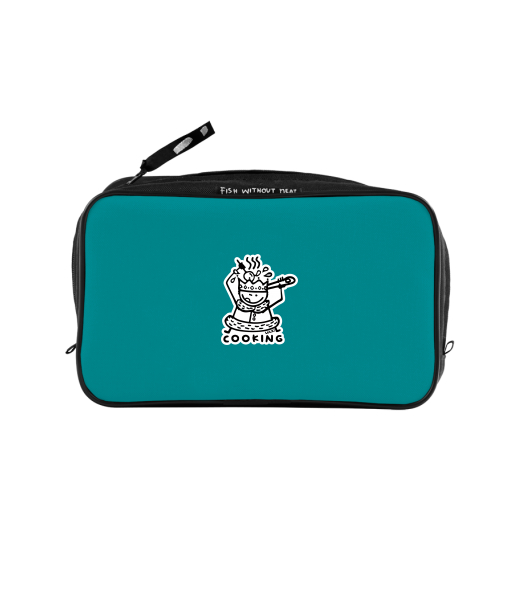 UAX Unisex sizes XL cosmetic bag with printing and pocket with design 1117 COOKING in color TURQUOISE