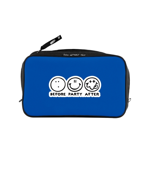 UAX Unisex sizes XL cosmetic bag with printing and pocket with design 1120 BEFORE PARTY AFTER in color CLASSIC BLUE