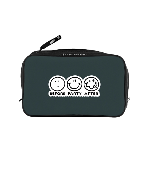 UAX Unisex sizes XL cosmetic bag with printing and pocket with design 1120 BEFORE PARTY AFTER in color GREY INK