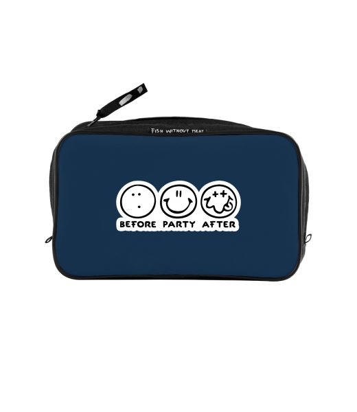 UAX Unisex sizes XL cosmetic bag with printing and pocket with design 1120 BEFORE PARTY AFTER in color MIDNIGHT BLUE