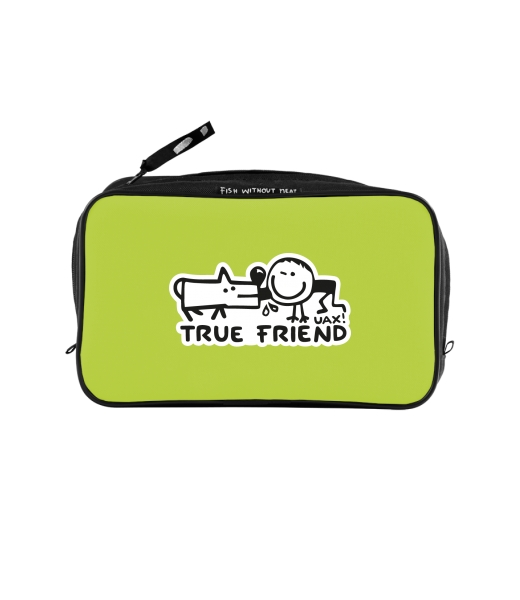 UAX Unisex sizes XL cosmetic bag with printing and pocket with design 1123 TRUE FRIEND in color GREEN LIMET
