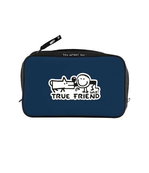 UAX Unisex sizes XL cosmetic bag with printing and pocket with design 1123 TRUE FRIEND in color MIDNIGHT BLUE