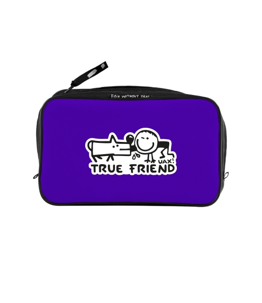 UAX Unisex sizes XL cosmetic bag with printing and pocket with design 1123 TRUE FRIEND in color VIOLET