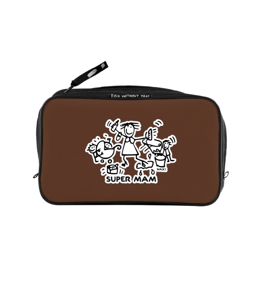 UAX Unisex sizes XL cosmetic bag with printing and pocket with design 1126 SUPER MAM in color BROWN SUGAR